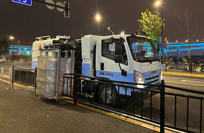 護(hù)欄清洗車配有左右前角噴與大容量清水箱,作業(yè)過程中對(duì)路面噴水降塵,能夠有效防止路面二次污染。