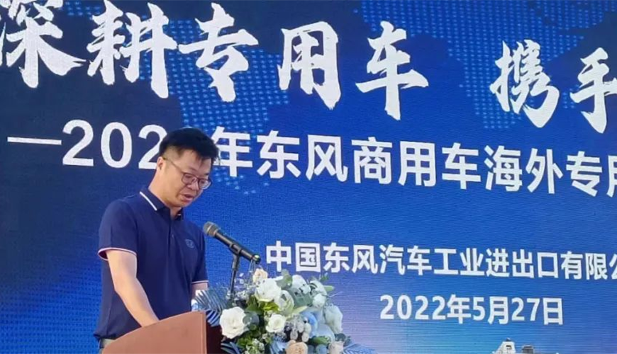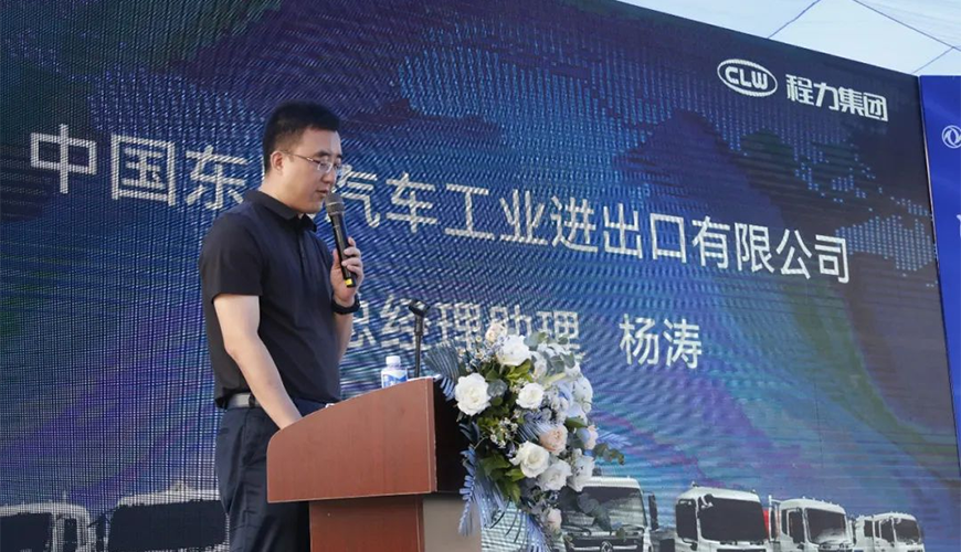 中國(guó)東風(fēng)汽車工業(yè)進(jìn)出口有限公司總經(jīng)理助理?xiàng)顫诨顒?dòng)中,做了重要講話。他強(qiáng)調(diào),首先要感謝程力集團(tuán)一直以來(lái),與東風(fēng)公司全面戰(zhàn)略合作和大力支持,并向參加推薦會(huì)的來(lái)賓與銷售經(jīng)理表示誠(chéng)摯的問(wèn)候。