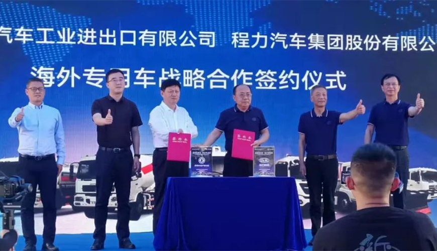 在這次線下大型東風(fēng)商用車海外市場(chǎng)新產(chǎn)品推薦會(huì)上,中國(guó)東風(fēng)汽車工業(yè)進(jìn)出口有限公司與程力汽車集團(tuán)股份有限公司聯(lián)合舉行了海外專用車戰(zhàn)略合作簽約儀式,雙方高層領(lǐng)導(dǎo)簽約后合影紀(jì)念。